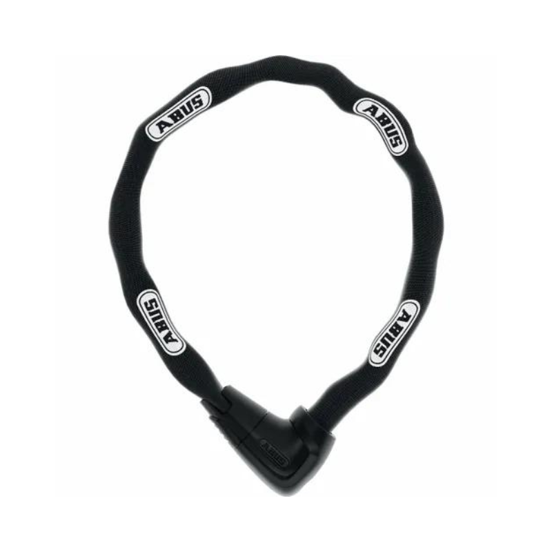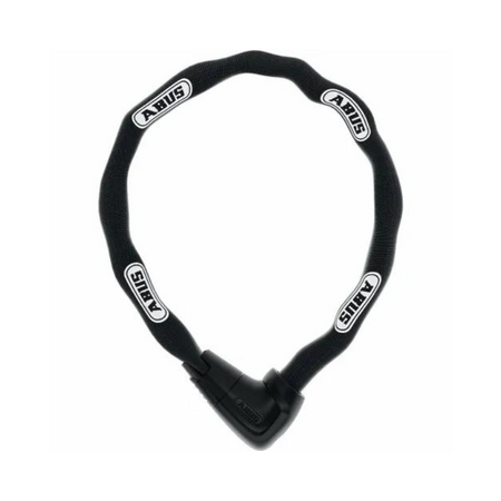 9 mm thick square chain with textile sleeve that prevents damage to paintwork The chain, the lock body and supporting elements of the locking mechanism are made of specially hardened steel Automatic cover for the keyhole against dirt and corrosion ABUS Plus cylinder for high protection against manipulations, e.g. picking