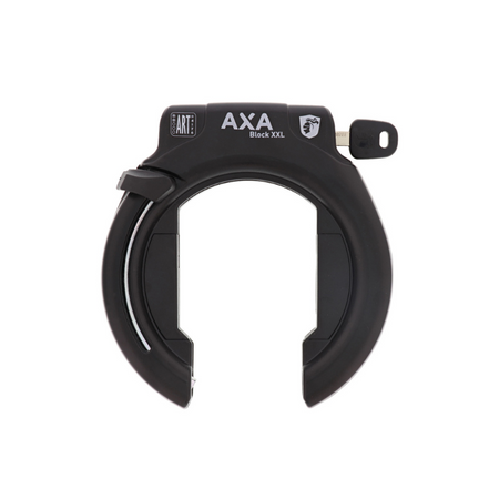 The AXA Block XXL is a high quality frame lock that offers optimal safety with its anti drilling cylinder and hardened steel bracket. The ergonomic design of the push button and the online key service offer you maximum comfort. The AXA Block XXL has an extra wide opening to create more space for tire and mudguard. The AXA Block XXL can be mounted in several different ways. Standard mounting procedure is the flexible fixing set that can be mounted on a variety of frame shapes, but also top bolt mounting is available.