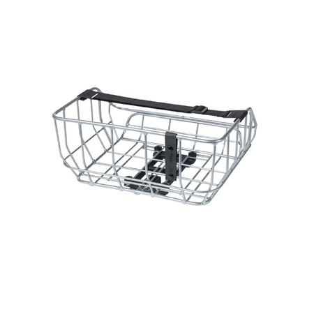 The Basil Portland is a stylish aluminium bicycle basket with a sleek design. The basket has a detachable and adjustable strap. You can easily click this strap onto the basket’s rim. There is a logo on the front of the basket made of a durable material.