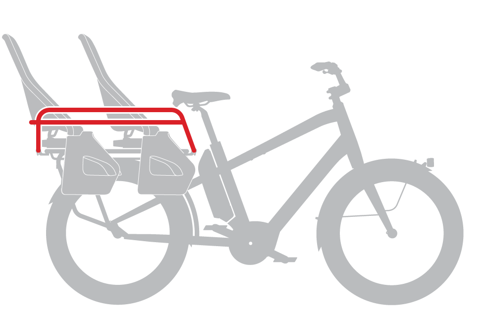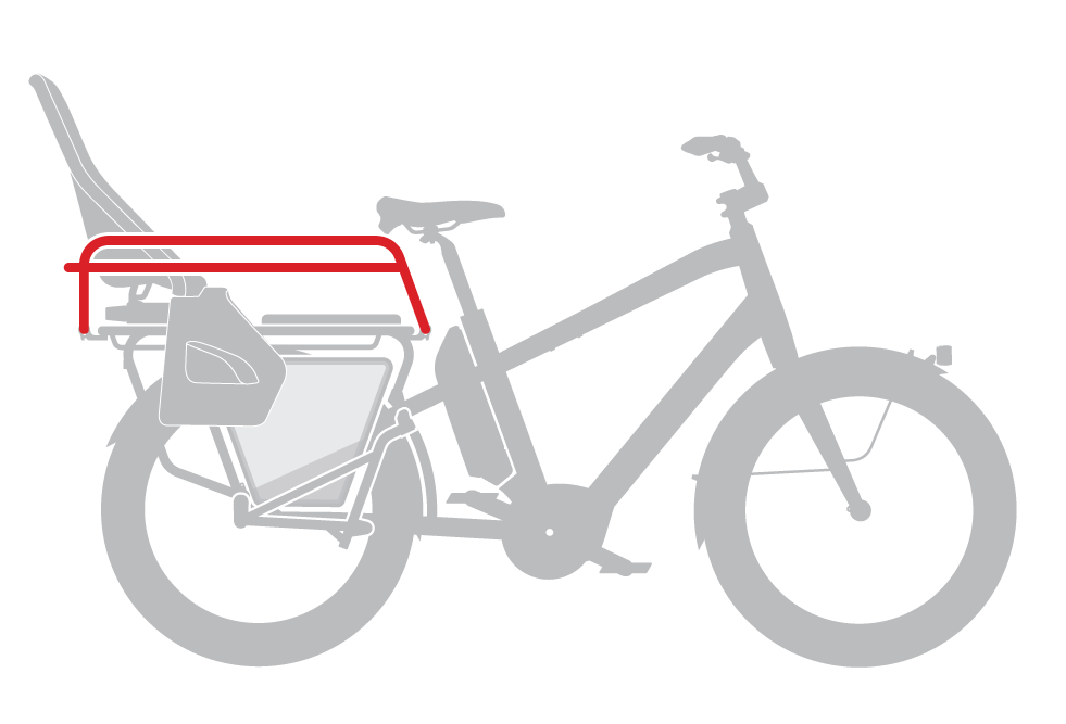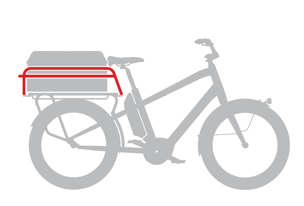 Only use High Rail with Benno Wheel Guards or Utility Pannier Bags. Make sure that no parts of the body or clothing come near moving parts on the bicycle, such as chain, spokes, tires or brakes. Benno Rails may help stabilise load during normal operation but do not protect in the event of an accident or bike falling over.