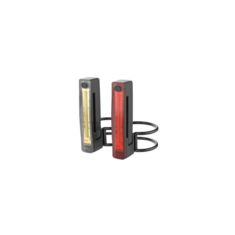 Plus Twinpack is a set of super-bright, wearable and USB rechargeable bike lights. With an output of 40 lumens of light from the front and 20 lumens from the rear, the integrated COB LEDs ensures you are well seen up to 1km away.