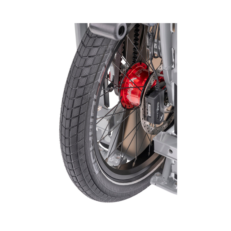 - Integrated Abus® Wheel Lock, keyed-alike with the battery