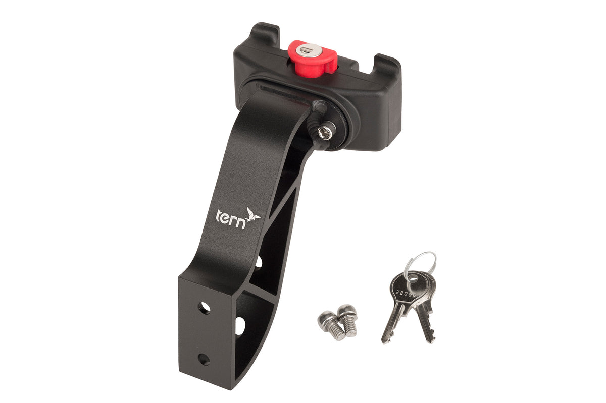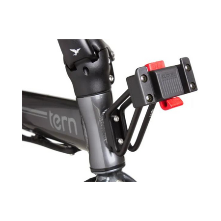 Attach bags, baskets, and racks to the front of a Tern bike. Our Luggage Truss™ cleverly attaches cargo to the frame of your bike rather than the fork or handlebar—so that your cargo doesn’t affect steering. Fabricated from rugged aluminum, the Luggage Truss is extremely stiff and can hold loads up to 7 kg (15 lb).