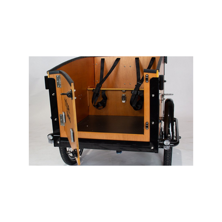 Replace the front panel on your cargo box with a front door, allowing you to get dogs, kids or adults in and out of the bike with ease!
